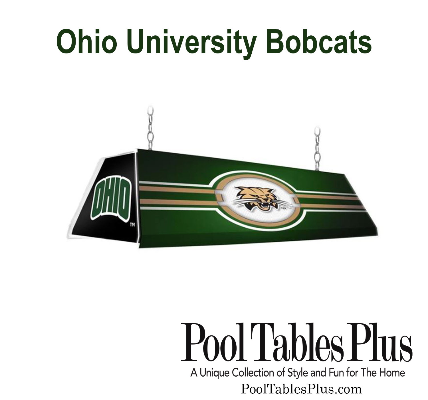 Our new Ohio University Bobcats edge glow pool table light features an ultra-modern design with edge glow corners and a high-resolution, high gloss image. A perfect piece to decorate any fan cave or billiard room, giving it a modern feel. Hanging hardware included. This is an officially licensed product of the NCAA and made in the USA.