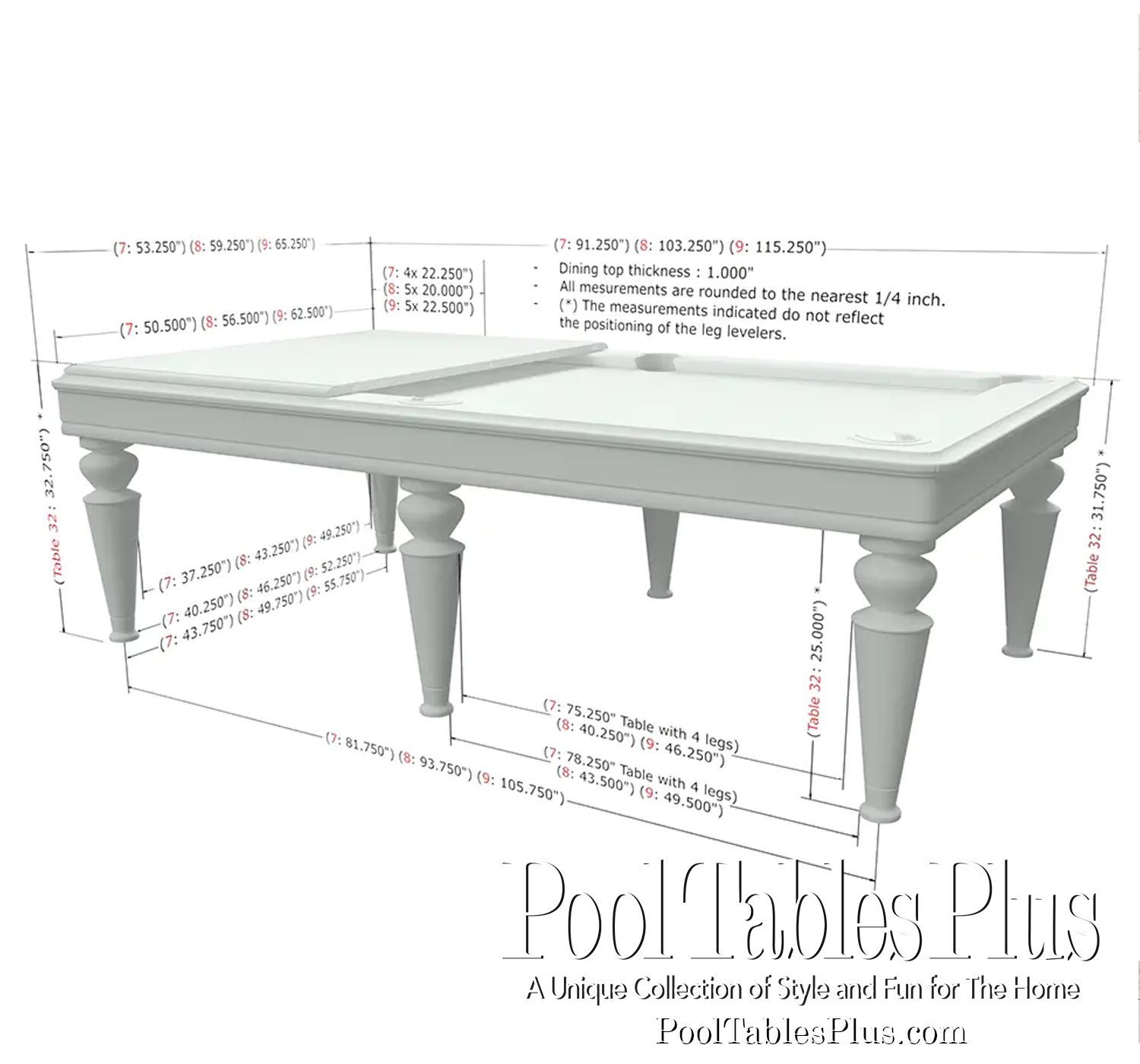 The Venezia is price in a 7′ or 8′ table. The 9′ size is also avaiable for an additional $2,000.
