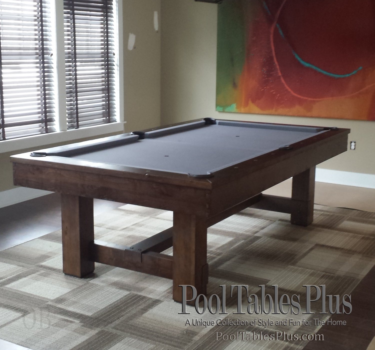 The Rhinebeck Rustic/Contemporary pool table is priced in a 7′ or 8′ size and made in the USA exclusively for Pool Tables Plus. Simple contemporary lines and heavy rustic timbers define this pool table. Made for today’s rustic/contemporary upscale customer.