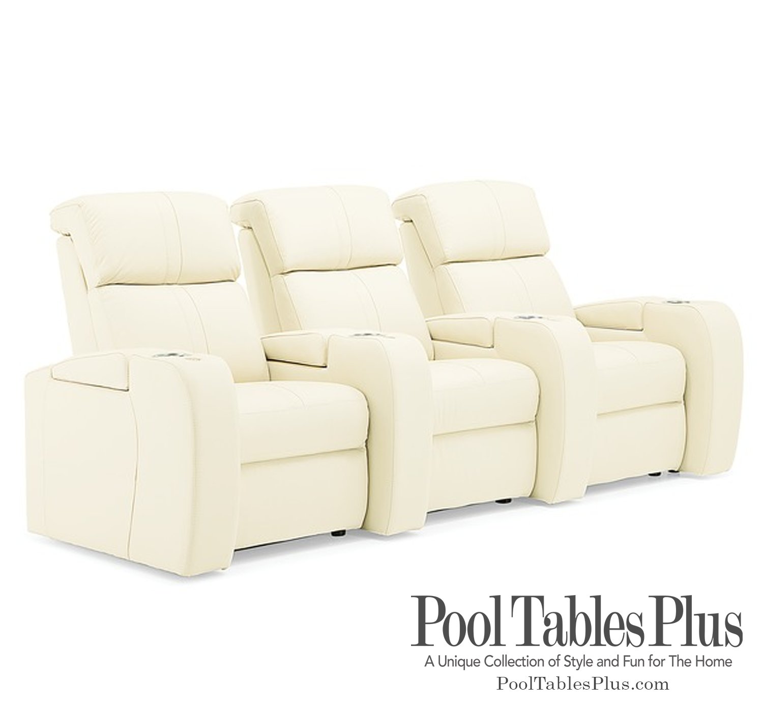 The Flicks Home Theater Sectional with Power Headrests and LED Cup Holders offers the Best Comfort with Unlimited Positioning. Turn any room into a home theater with this home theater sectional. Track arms offer a sleek look to this piece and also feature cup holders with LED lighting and storage. Power reclining and power headrests allow you to get in the ideal position to enjoy every minute of a movie. Add tray tables or an ipad or wine glass holder to this sectional for even more functionality.